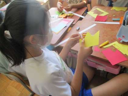 来週にせまって1年生を迎える会の準備をしました。6年生からのプレゼントは、王冠です。子どもたちはそれぞれのペアの子に工夫して作っています。