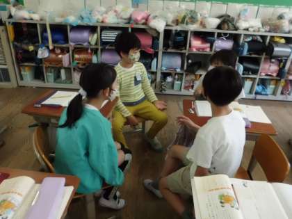 「もっと知りたい、友だちのこと」の学習では、「質問名人」になるために必要なことを考えています。今日は決められた時間内にいくつ質問のラリーができるかをゲーム形式で行いました。初めは「好きな〇〇は?」という質問が多かったですが、学習を通して、「いつ・どこで・何を」を尋ねる質問や、くわしく聞くための質問、理由を尋ねるための質問など、様々な質問の種類を使うことができるようになりました。質問をすることで、「相手のことが詳しく分かる」という質問の良さに気付くことができました。