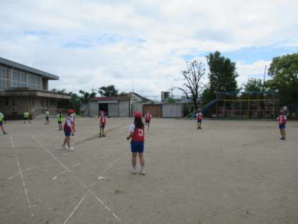 今日はウォーミングアップで、チームでキャッチボールをしました。