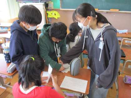 空いている時間を見つけ、係で集まり話し合いをしています。