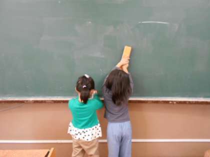 黒板も背伸びをしながら
