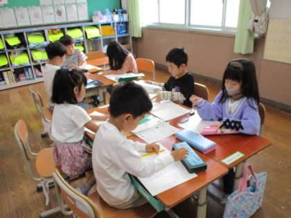 その後は、グループの友だちと、濁点のつく言葉をたくさん集めました。