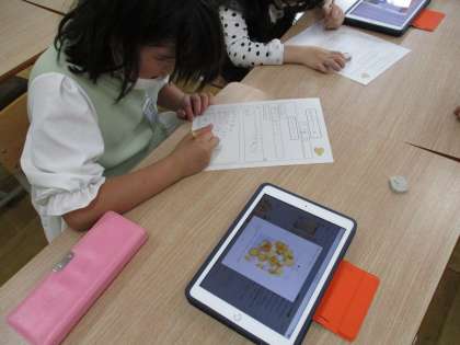 明日のジャガイモの収穫を前に、タブレットを使って調べ学習をしました。