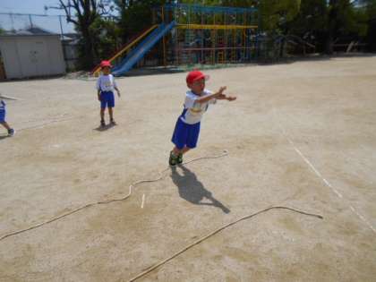 楽しそうにいろいろな跳び方にチャレンジしていました。