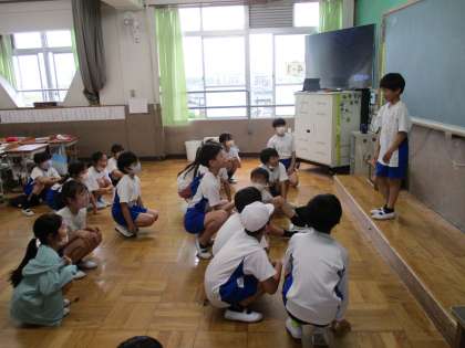 雨が降っていた昼休み。遊び係の企画で「船長の命令」というゲームをしました。大盛り上がり!!