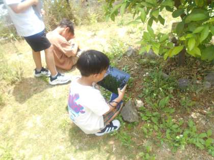「せが高くなってる。」「先が黒いで。」「今日は天気がいいから、わた毛とんでいったんや。」と、学習したことを確認しながらタブレットで写真を撮っていました。
