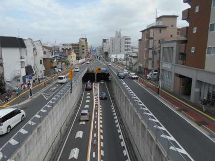 その後、五条通を歩きました。校区紹介カードに「歩道橋」のことが書いてあったとき、