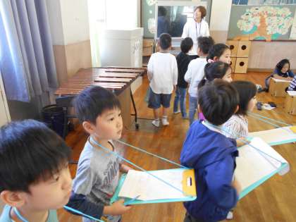 部屋のドアをノックして、「失礼します!」とみなさん上手に言えていました。
