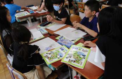 子どもたちは真剣に話し合っていました。「節水をなにげなくしていたけれど、もっと意識してしていきたいな。」「残ったお風呂の水って使えるのかな?」と様々な角度から意見交換していました。