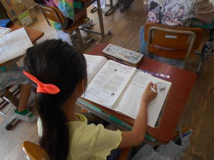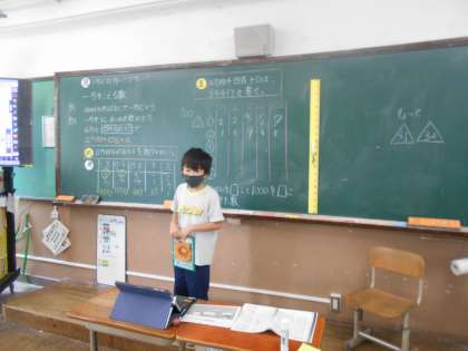 2年生で習った、1000の束が10個で一万を使って、位に気を付けながら、一万のくらいまでの数を読んだり書いたりしました。