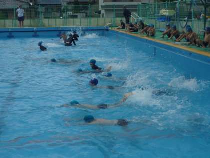 「うかぶ」「けのび」「バタ足」の泳ぎ方を学習しました。