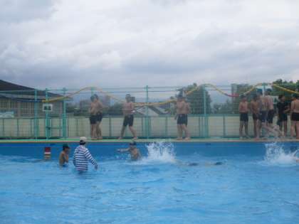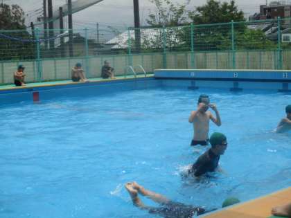 あいにくのお天気でしたが、1・2組初めての水泳学習を行いました。去年の動きをしっかりと覚えて、スムーズに準備を頑張りました。
