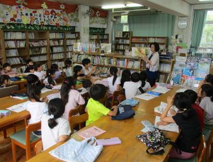 司書の先生に本の読み聞かせをしていただきました。