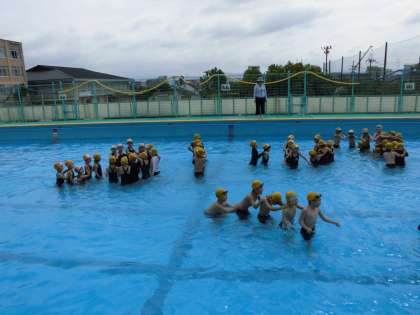 水遊びは、水の抵抗や浮力などを感じながら、水に対する不安感や不快感をとりのぞくための学習です。