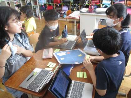 わたしたちにできることの学習が進んでいます。今日は、自分たちで調べた問題点に対する解決策をみんなで分類してみました。