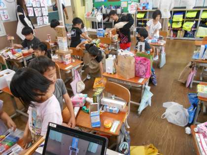 本日は、図画工作科 「はこでつくったよ」の学習をしました。