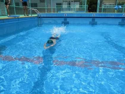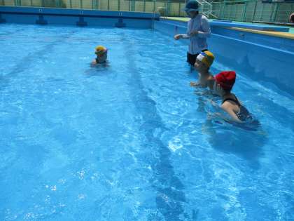 水泳学習は、全員で水慣れをしたあと、グループに分かれて学習しました。