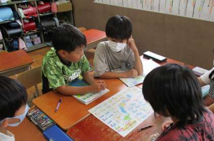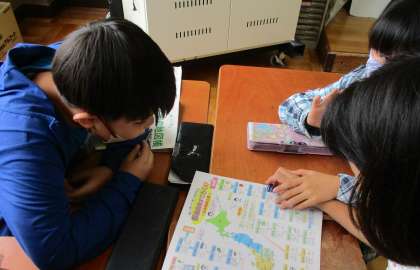 京都府の学習が終わり、次は日本について学習をしています。日本の県の名前や特産を楽しんで覚えるためにすごろくを使いました。わいわいと大盛り上がりでした!!