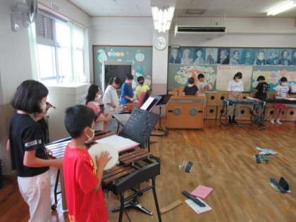 リコーダーや歌の活動に加えて、全員での合奏にも取り組んでいます。