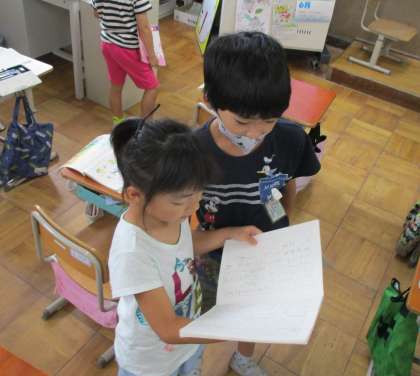友達と交流すると、同じ絵を見て作った文なのに、内容が全然違い、個性があふれていました。