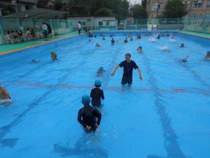 「クロールの息継ぎのとき、上げない手もぴんと伸ばす。」