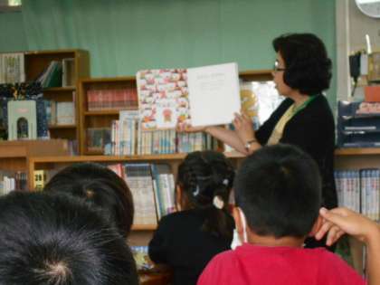 今日の読書の時間も図書室の杉山先生と一緒に学習しました。