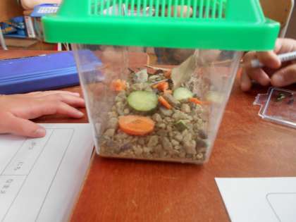 お家から持たせてもらった野菜の切れ端や、チーズのかけらなどあげながら休み時間ごとに様子を見ている子もいます。
