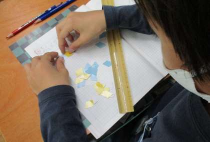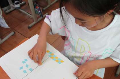 今日は、学習した平行四辺形をしきつめて気が付いたことやできた形の根拠を発表しました。
