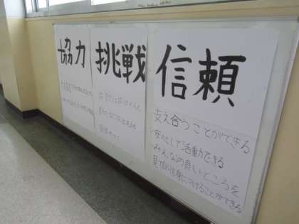 廊下に掲示し、5年生全員が意識できるようにしています。