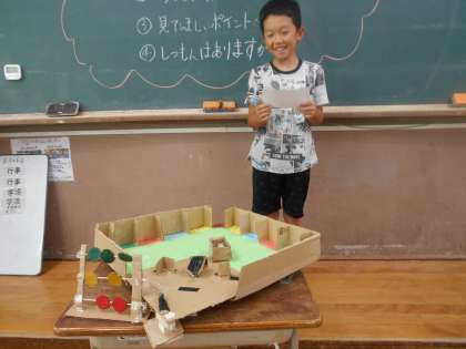 子どもたちが夏休み取り組んだ自由研究についてクラスのお友だちに発表します。