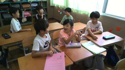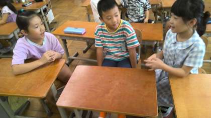 国語の時間は、夏休みにがんばったことや楽しかったこと・発見したことなどを交流しました。プールに行ったこと・お泊りしたこと・カブトムシとふれあったことなど・・・いろいろなことを話していました。自然と笑顔になっていきました。