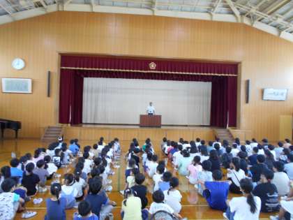 とても暑い中でしたが、校長先生のお話や、表彰式、転入生の紹介など、しっかり集中して聴くことができていました。
