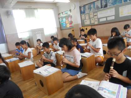 音楽の学習では、タンギングを意識してリコーダーを練習していました。