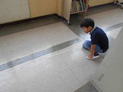 正確に測るためのポイントを確認した後、色々な場所の長さを予想して測っていきます。