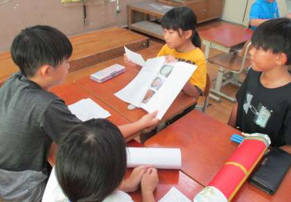 今日は、夏休みの作品について発表し合いました。「星空を見たいから望遠鏡を作りました。」「外国人と話がしたいので、インタビューをしました。英語で聞くことが難しかったです。」と自分の作品への思いをみんなに伝えていました。
