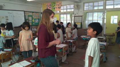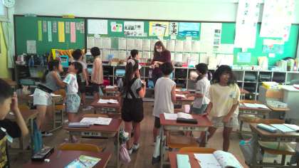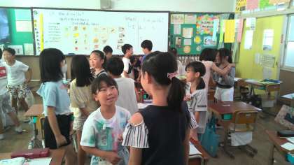 今日はALTのセラ先生と一緒に外国語の学習をしました。