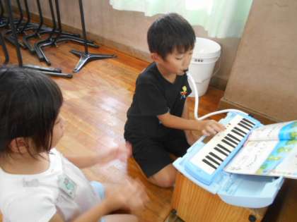 楽しく歌った後は、鍵盤ハーモニカの演奏。みんな張り切って演奏していました。