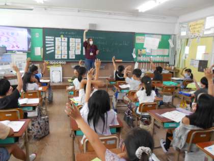 今日はALTの先生と一緒に何が好きかをたずねたり、こたえたりする表現を学習しました。