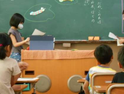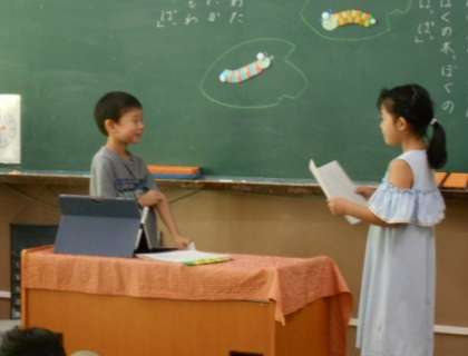 2匹のあおむしの会話を音読発表すると、