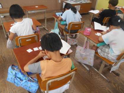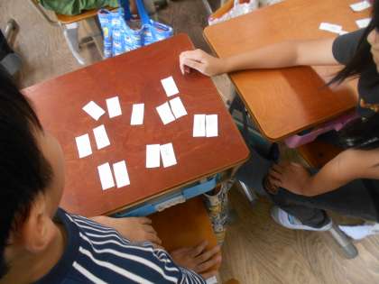漢字の「へん」と「つくり」について学習をしたので、漢字クイズカードを作って問題を出し合いました。