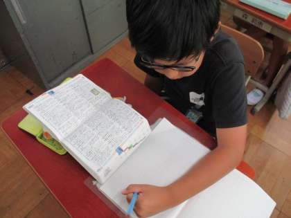 国語科の「ごんぎつね」の学習が始まり、今日は意味調べをしました。「川べりって川のどこら辺?」「菜種って何だろう?」と言いながら辞書を引いていました。辞書を引くスピードが格段にアップ!!辞書を引くことが楽しい4年生です。
