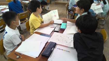 1学期から育て、観察をしてきたホウセンカの育ち方をまとめました。今日はグループで交流し、植物の育ち方のじゅんじょについて考えました。どのグループも、友達の発表をよく聞くことができていました。