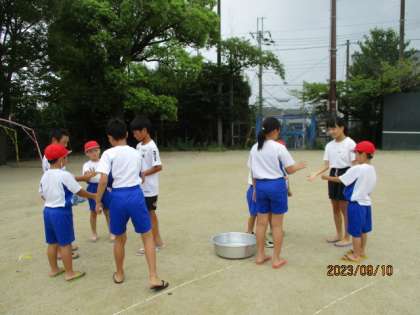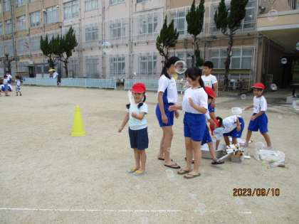 9月11日(月) 1年生 学活「6年生と水あそびパーティー」(3組)その2