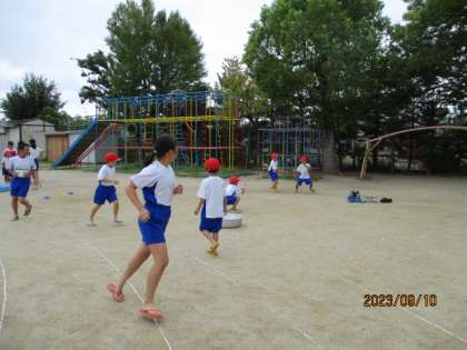 おにごっこコーナー(マヨネーズ容器で飛ばした水があたったら鬼です。)、