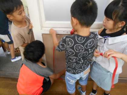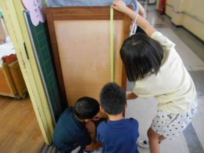 自分の身長と、テープとを比べている子もいました。