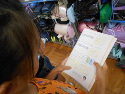 一人で考えたノートを写真に撮り、大型テレビに映して説明してもらいました。