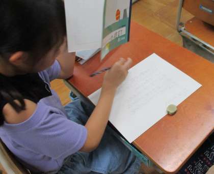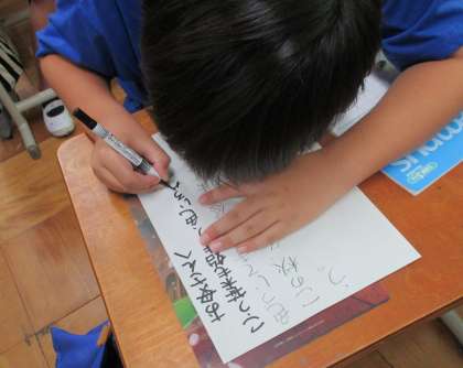 秋の手紙を書くという活動内容を聞くと張り切る子どもたち。写真を見て知った秋の言葉を使って、手紙を集中して仕上げていました。