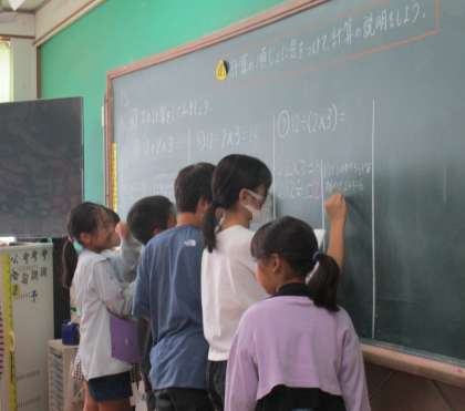 3つの計算問題に対して、どのような計算方法があるかノートに書きました。すぐに、ノートに書き始める子どもたち。「誰か黒板に書いてくれる?」と聞くと、たくさん手が挙がり嬉しい!!