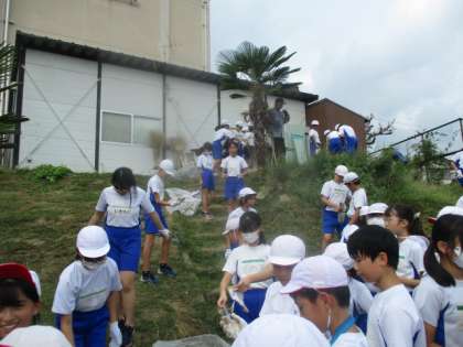 草取りのお手伝いをしました。いつもお世話になっているボランティアの方と一緒に、自然広場の草取りをしました。