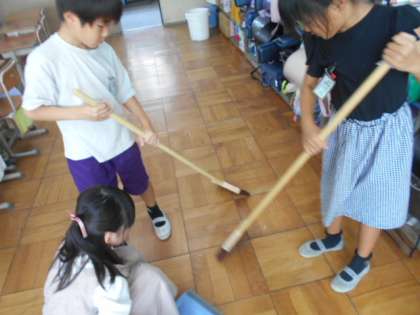 給食を食べたらすぐに掃除です。